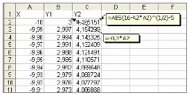 Столбец Х заполняем значениями от -10 до 10 с шагом 0,01 (Правка - Заполнить - Прогрессия)