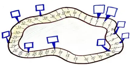 Чтобы правильно разместить щиты, надо посмотреть на каком расстоянии от начала маршрута находится объект. Например, известно, что магазин находится на расстоянии 9/10 от начала маршрута. Значит