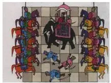 «чёрных и зелёных»). В углах 64 - клеточной доски располагались четыре армии, состоящие из короля, слона, колесницы (которая потом превратилась в ладью), коня и нескольких пешек. Чтобы выиграть в