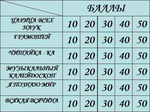 - Если команда правильно ответила, то ей присуждается то количество баллов, которое указано на табло, и команда дальше продолжает игру.