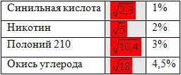 Синильная кислота Никотин Полоний 210 Окись углерода |