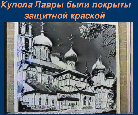 И в Москве, и в подмосковных городах строили оборонительные сооружения. Вводится светомаскировка. В Загорске купола Лавры были покрыты защитной краской.