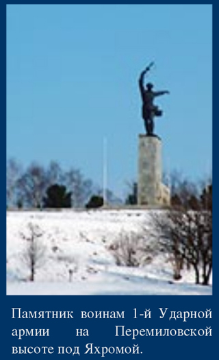 На Перемиловской высоте под Яхромой теперь стоит памятник воинам 1-й Ударной армии.