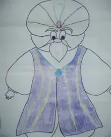 Султан - изнеженный, полный, тучный. Привык к богатству и роскоши. Одежда у него соответствующая: просторный шелковый халат, легкие удобные туфли; чалма- специальный мужской головной убор из легкой ткани. Любит украшения, у него перстни на пальцах.