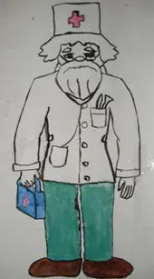 Доктор - «лекарь, из - под Каменного моста аптекарь» в специальной одежде. Главное для него - умный вид, поэтому он в очках, с чемоданчиком, с разными скляночками.