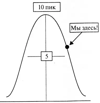 На доске делается рисунок (рис.1) и поясняется: "Итак, представьте себе, что каждый из вас альпинист. Альпинист - это человек, покоряющий горные вершины. Да, кстати, а какая самая высокая в мире (ответы детей) - Эверест! Его высота почти 10 тысяч метров - 10 километров! Теперь представьте, что пик - это вершина горы - это по-настоящему дружный класс, это коллектив, где все помогают друг другу, не сплетничают и не обзываются... Какой высоты достигли вы? Группа альпинистов - это твои одноклассники... (от 1 до 10), подумайте и ответьте".