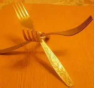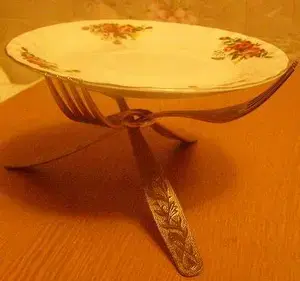 Приборы и материалы: тарелка, 3 вилки, кольцо для салфетки, кастрюля.