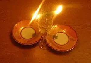 - Поставить зажженную свечу позади бутылки, а самому стань так, чтобы лицо отстояло от бутылки на 20-30 см.