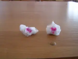 - Наблюдается окрашивание ваток в розовый цвет вследствие явления диффузии.
