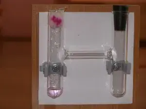 - Смочим кусочек ваты фенолфталеином и положим сверху в колбочку.