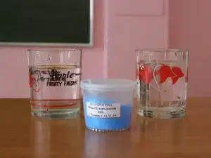 Приборы и материалы: стеклянный сосуд, пузырёк, пробку, спиртовая тушь, вода.