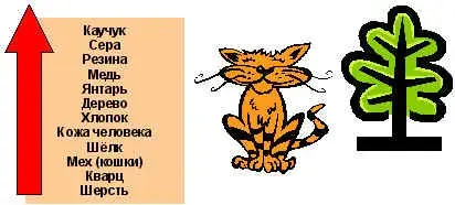 Ответ: В соответствии со списком веществ, записанных в порядке убывания энергии связи электрона с атомами, электроны на мехе кошки закреплены слабее, чем на дереве. При трении кошка заряжается положительно, дерево - отрицательно.