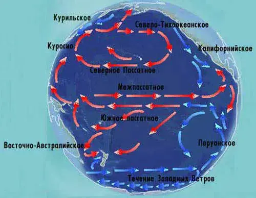 - Тихий океан - самый неспокойный и грозный океан. В центральных его частях дуют пассаты, в западных - муссоны. Зимой с материка - холод и сухой муссон, оказывающий влияние на климат океана: часть морей покрывается льдом.