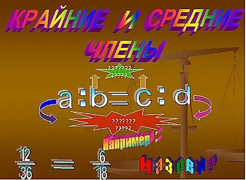Обучающие: познакомить учеников с понятиями: пропорция, ее крайние и средние члены; сформулировать основное свойство пропорции; показать, что пропорции могут быть верными и неверными; закрепить эти понятия на конкретных примерах.
