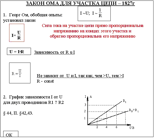 Учитель: Данный закон немецкий физик Георг Ом открыл в 1827 году.