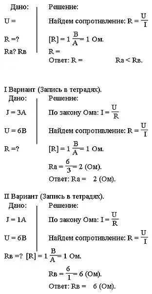 Учитель: Докажите это расчетами. I Вариант решает для проводника А.