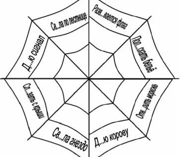 (На доске изображение паутины, пчелка-помощница раздает копии паутины каждой группе). Чтобы в нее не попасть, нужно вставить пропущенные буквы. Выполнив задание, поднимите руку и, получив карточку для взаимопроверки, проверьте правильность выполнения задания у другой группы. (Пчелка-помощница дает нектар каждому члену группы).