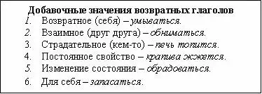 Заседатель №2: Пункт четвертый. Закрепить навечно за суффиксами -СЯ и -СЬ право придавать добавочные значения возвратным глаголам.