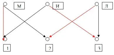 (М1+М2)*(И1+И3)*(Л2+Л3)= (М1*И3+М2*И1+М2*И3)*(Л2+Л3)=М1*И3*Л2+М2*И1*Л3;