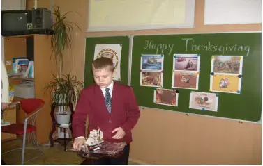 Сообщения учащихся на английском языке сопровождается показом слайдов или рисунками.Thanksgiving Day is on the fourth Thursday in November .