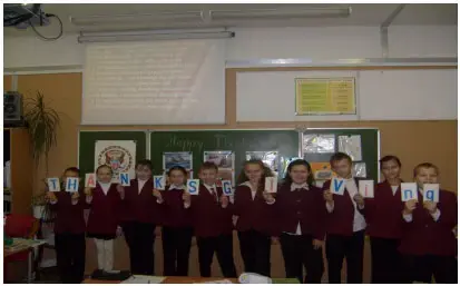 I'll give some of you the cards with written letters on them. Make up a word THANKSGIVING from these letters, Do you know that every letter in this word has its own meaning. Let?s read it.