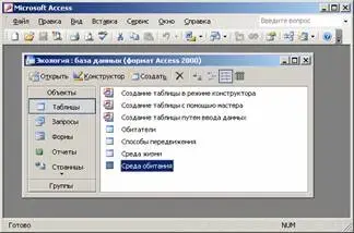 С каждым объектом базы данных работа выполняется в отдельном окне.