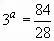 log 3 x = а,