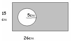 Задача №2: В прямоугольной пластине просверлено круглое отверстие. Найдите площадь детали и её массу, если 1 см2 весит 2 г. (число ![]()