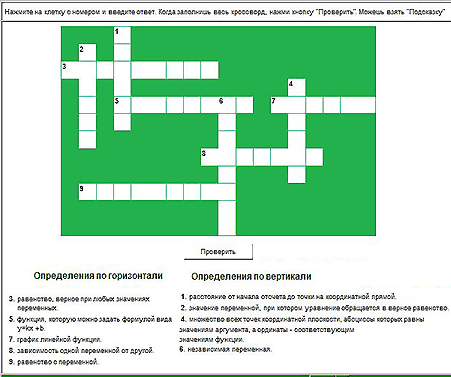 - Завершающим этапом работы на повторение и обобщение изученного материала предлагается электронный кроссворд. [Приложение 4] По окончанию результат выводится компьютером в процентном соотношении.