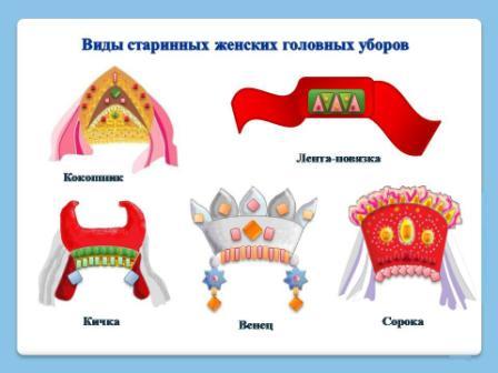 1. Головные уборы играли немаловажную роль в костюме женщины. Без головного убора девушки и женщины не могли появляться в общественных местах. По головному убору судили о семейном