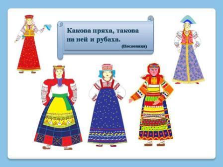 1. Для повторения типов и основных элементов русского народного костюма сначала проводится «разминка» в виде вопросов и ответов <Рисунок 8>. Затем
