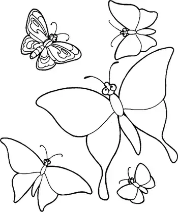 На картинке узоры остались только у одной бабочки. Придумай узоры для остальных бабочек и раскрась их.