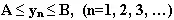 называется ограниченной, если можно указать такие два числа А и В, между которыми лежат все члены