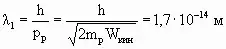 1, который разогнали в электрическом поле при напряжении 3,0 МВ и дебройлевскую длину волны