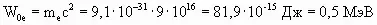 .- Энергия покоя электрона