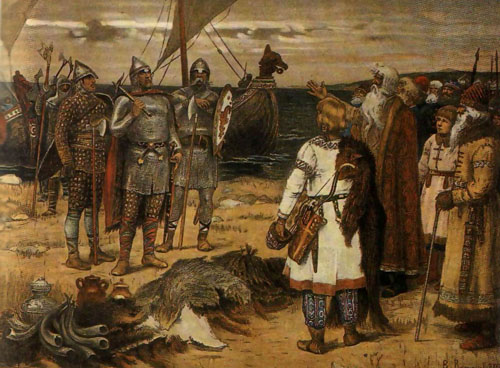 а) Л: - А теперь мы с вами отправляемся в Древнюю Русь в 862 год в поисках слов со звуками [c], [c'] - [з], [з']. Что происходило тогда в Древней Руси? (Иллюстрация, приложение 5)