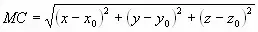 Расстояние от произвольной точки M (x, y, z) до точки C вычисляется по формуле