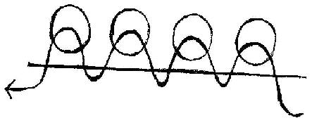 Этот простенький шов, известный даже тому, кто не питает склонности к шитью, с успехом можно применить и для вышивки бисером. Выполняется он так. Закрепить нить с изнанки и вывести иглу на лицевую сторону ткани, иглу продеть в отверстие бисеринки и ввести в ткань рядом с бусиной (рис. 3). Затем снова вывести иглу на лицевую сторону, выполнив маленький стежок с изнанки, и нанизать вторую бисеринку. <рисунок4>