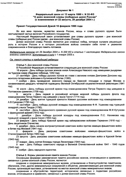 - У вас на партах лежит документ - Федеральный закон от 31 марта 1995 года № 32-ФЗ.