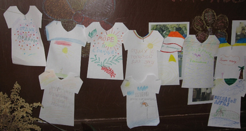 Ваша задача - оформить футболку и написать на ней девиз вашего лета. Когда футболки будут готовы, повесьте их сушиться на верёвку.