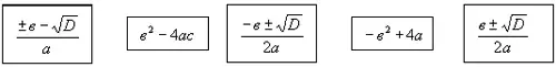 8. Выберите формулы для нахождения корней квадратного уравнения.