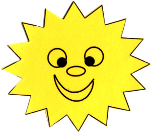 Вы сегодня так хорошо мне помогали, вы были добрыми, приветливыми хозяевами. И я хочу вам в подарок подарить вот это веселое солнышко. Каждый раз, когда вам будет грустно, трудно, подойдите к нему, приложите ладошку, и вам сразу станет легче и веселее. (Приложение - рис. 3)