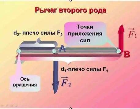 Рычаг второго рода: "рычаг силы", "рычаг скорости".