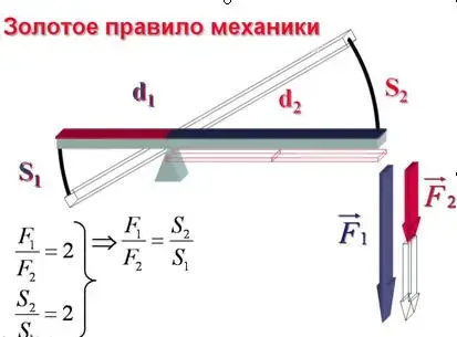 Выведение соотношения между приложенными к рычагу силами, плечами этих сил, скоростями точек приложения сил. Выход на золотое правило механики и применение его в биомеханике.