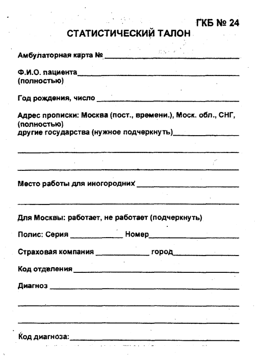 Остальные графы медицинской карты больного будут заполняться врачом от руки по мере необходимости.