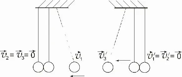 Закрепление: рассмотреть опыт с тремя шарами равной массы, объяснить наблюдаемое явление с точки зрения законов сохранения и теории абсолютного удара.