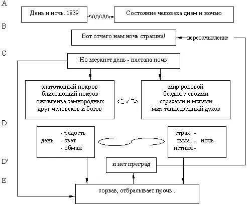 В основе стихотворения - развернутая антитеза, противопоставление двух центральных образов - дня и ночи, олицетворяющих собой два состояния человеческой души.