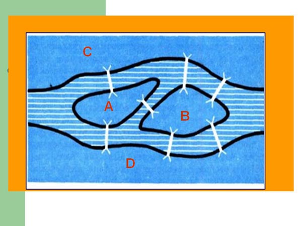 В нашей задаче всего островов 4: A, B, C, D. Число мостов, ведущих к этим участкам соответственно: 5, 3, 3, 3, значит обход невозможен. <Рисунок 14>.