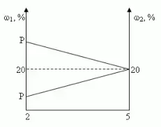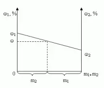 Отрезок прямой (основание графика) представляет собой массу смеси, а на осях ординат откладывают точки, соответствующие массовым долям растворенного вещества в исходных растворах. Соединив прямой