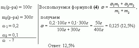 - массовая доля растворенного вещества в новом растворе, полученном при смешивании первого и второго растворов;